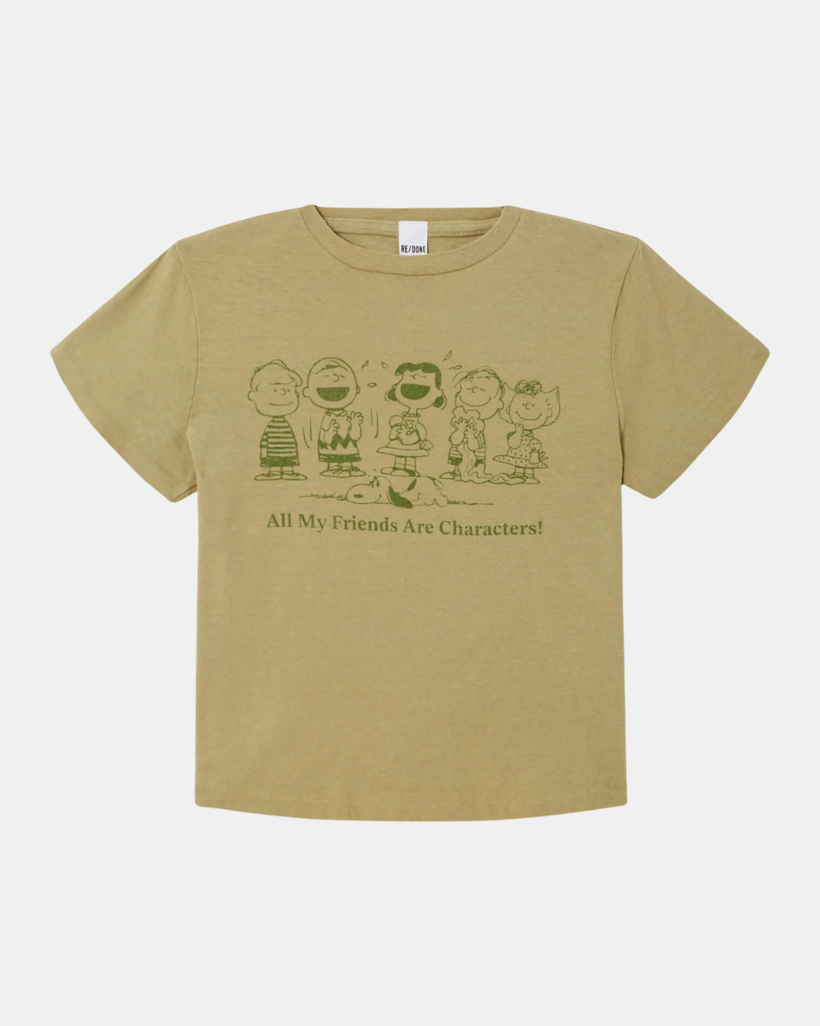 Classic "Peanuts Characters" Tee by RE/DONE. A forever favorite, easy, everyday t-shirt in a soft recycled heritage cotton. Featuring a collectible vintage inspired graphic. Styled with the 90's Jean.