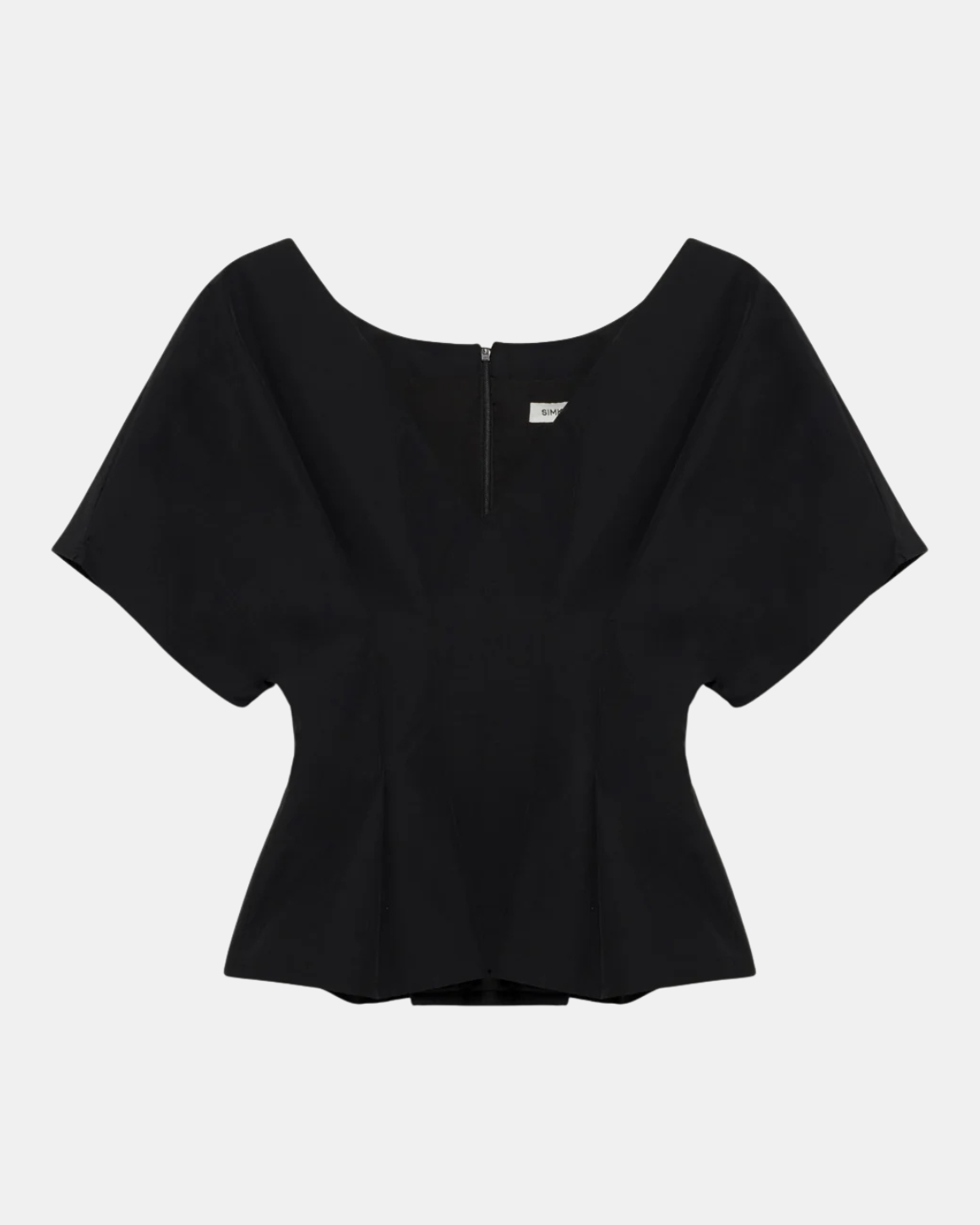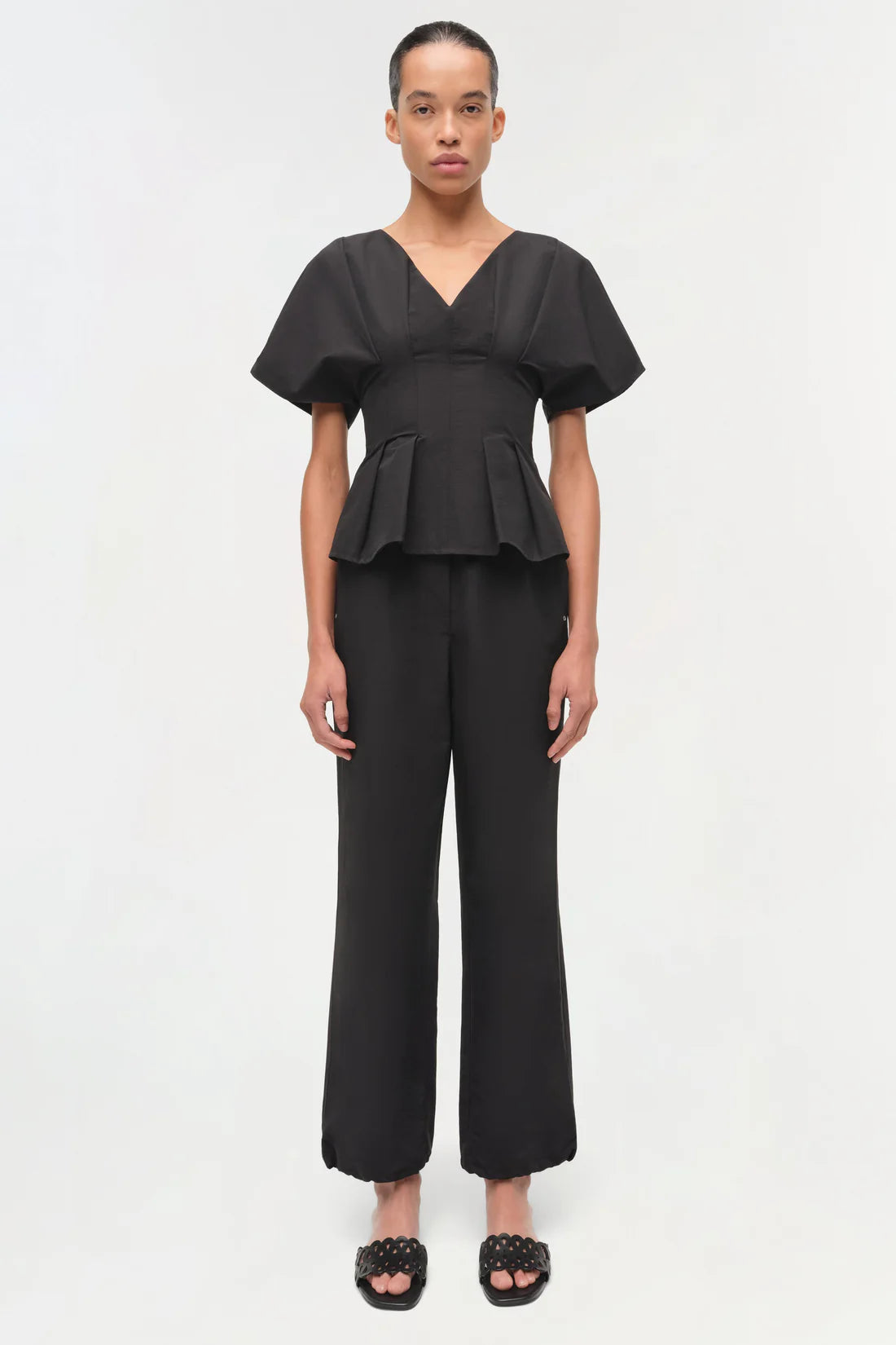 The Rozen Cotton Faille Top by Simkhai. Cut from cotton faille, this peplum top features an open V-neck and finely tailored pintucks that release into structured pleats at the hem. A refined piece with effortless polish for day or night.