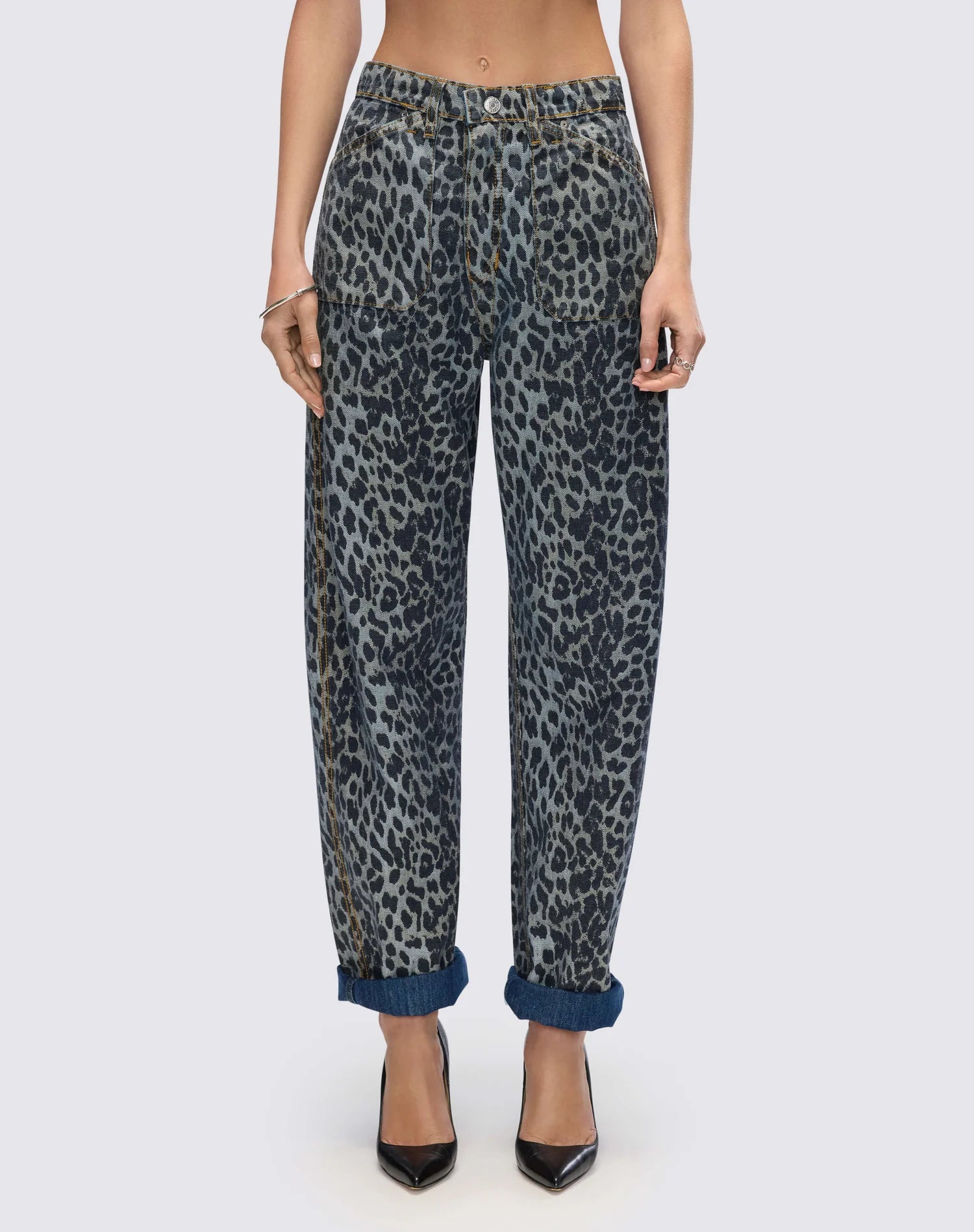 The Rewind Jean flips between a bold printed interior and a classic denim exterior, giving you two distinctive looks in one sculpted, modern fit. Finished with an authentic vintage-inspired wash on the denim side and a cool indigo cheetah print on the workwear side.