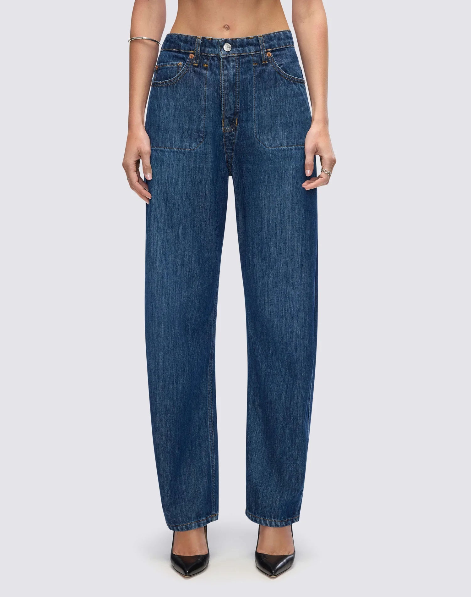 Fit: Multi-fitting. Wear it belted for a high rise or slung lower for a mid rise. Relaxed overall with a subtle barrel-shaped leg. Can be worn cuffed or uncuffed.