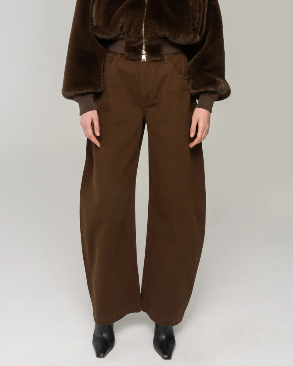 The Ninon Pants by Ronny Kobo are designed with a modern wide-leg silhouette in heavy denim for seasonal structure. With a high waist and clean finish, they balance oversized volume with sleek tailoring.