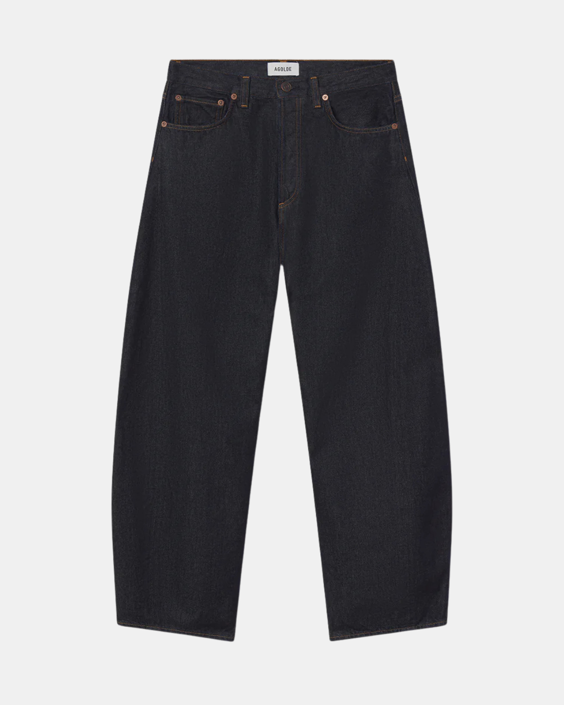 The Luna Pieced Jean by AGOLDE is defined by its dramatic, curved leg and high-rise waist, bringing sculptural volume to a classic silhouette. Cut in a dark, clean rinse and crafted from soft, weightless denim, this standout shape is finished with subtle seaming details. Style with a tucked-in top to highlight the unique lines.