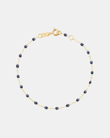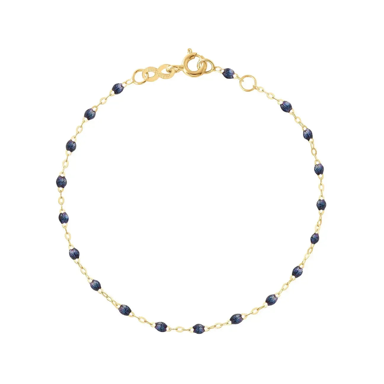 Classic Gigi Bracelet in Midnight by gigi CLOZEAU. A luminous expression of elegance and understated sophistication, the Classic Gigi Bracelet in Midnight is crafted in 18k gold with deep shimmery midnight-blue resin pearls that catch the light with subtle radiance. Bold yet versatile, it’s perfect worn alone or layered—celebrating color, creativity, and everyday style.