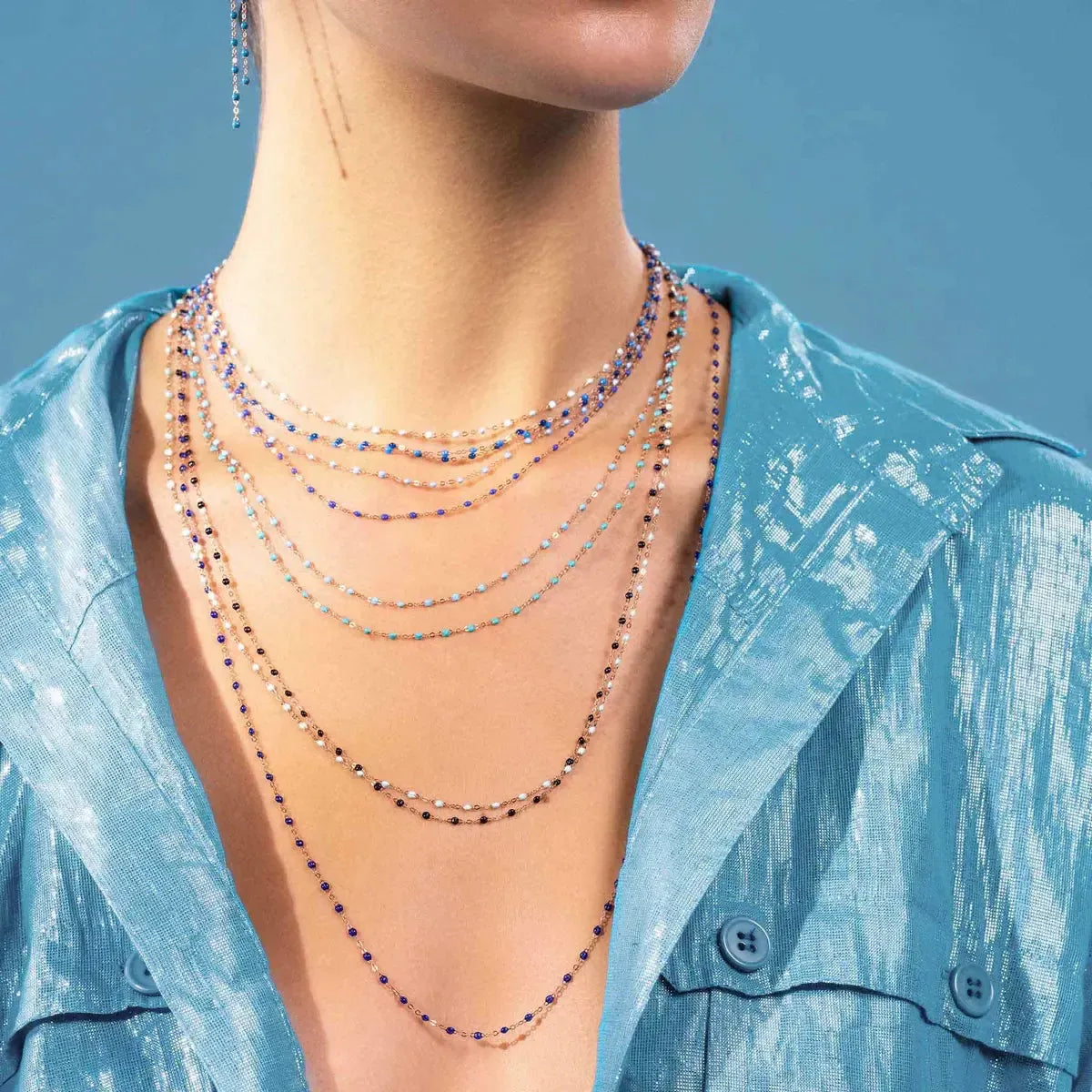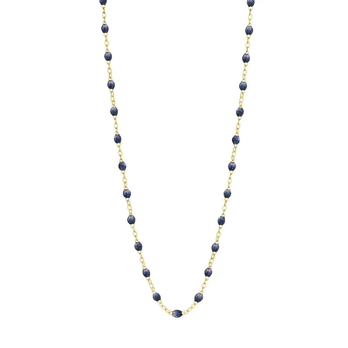 Classic Gigi Necklace in Midnight by gigi CLOZEAU. A luminous expression of elegance and quiet sophistication, the Classic Gigi Necklace in Midnight is crafted in 18k gold with shimmery midnight-blue resin pearls that evoke the depth and glow of the night sky. Striking yet timeless, it’s perfect worn alone or layered—celebrating individuality, personal style, and everyday refinement.