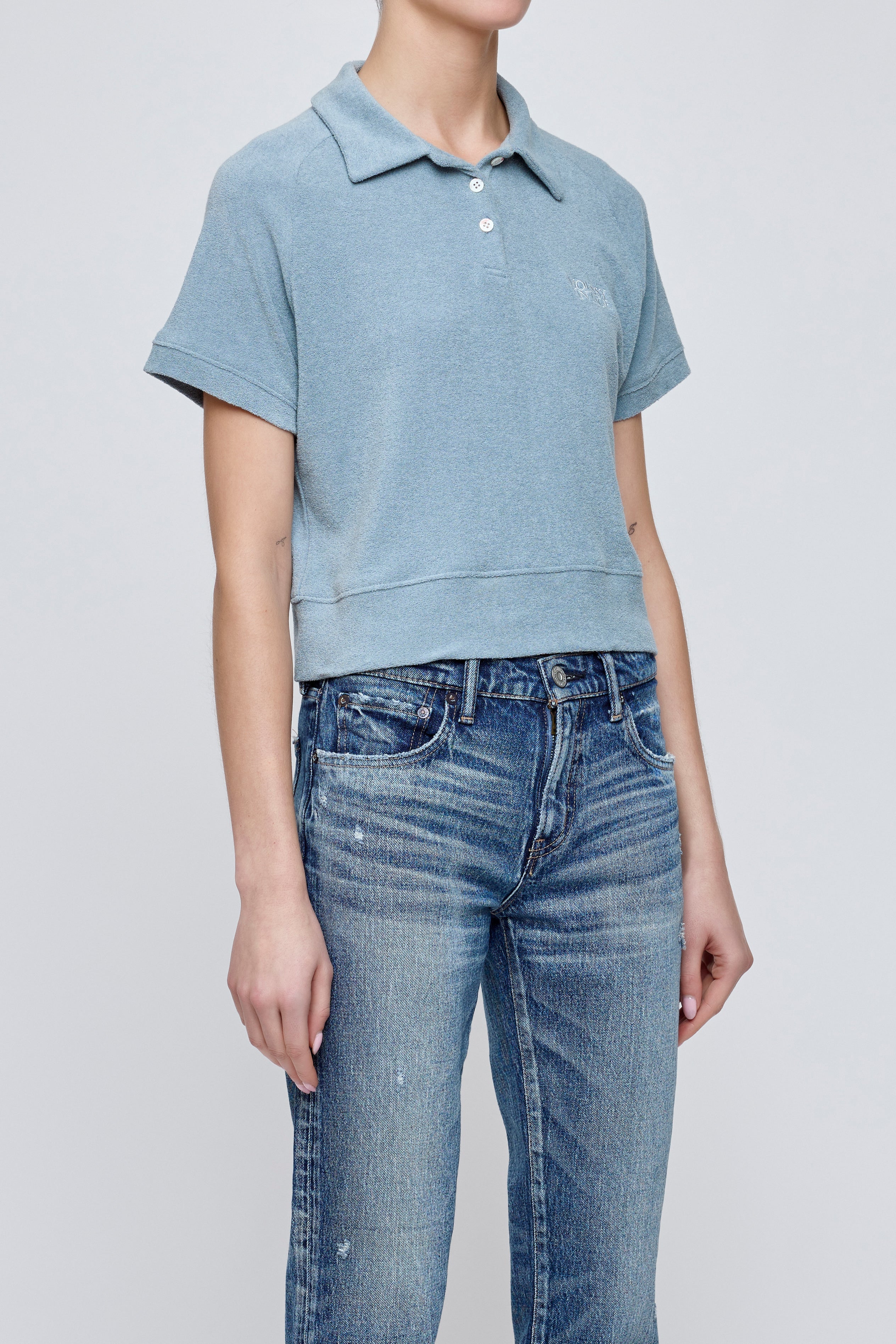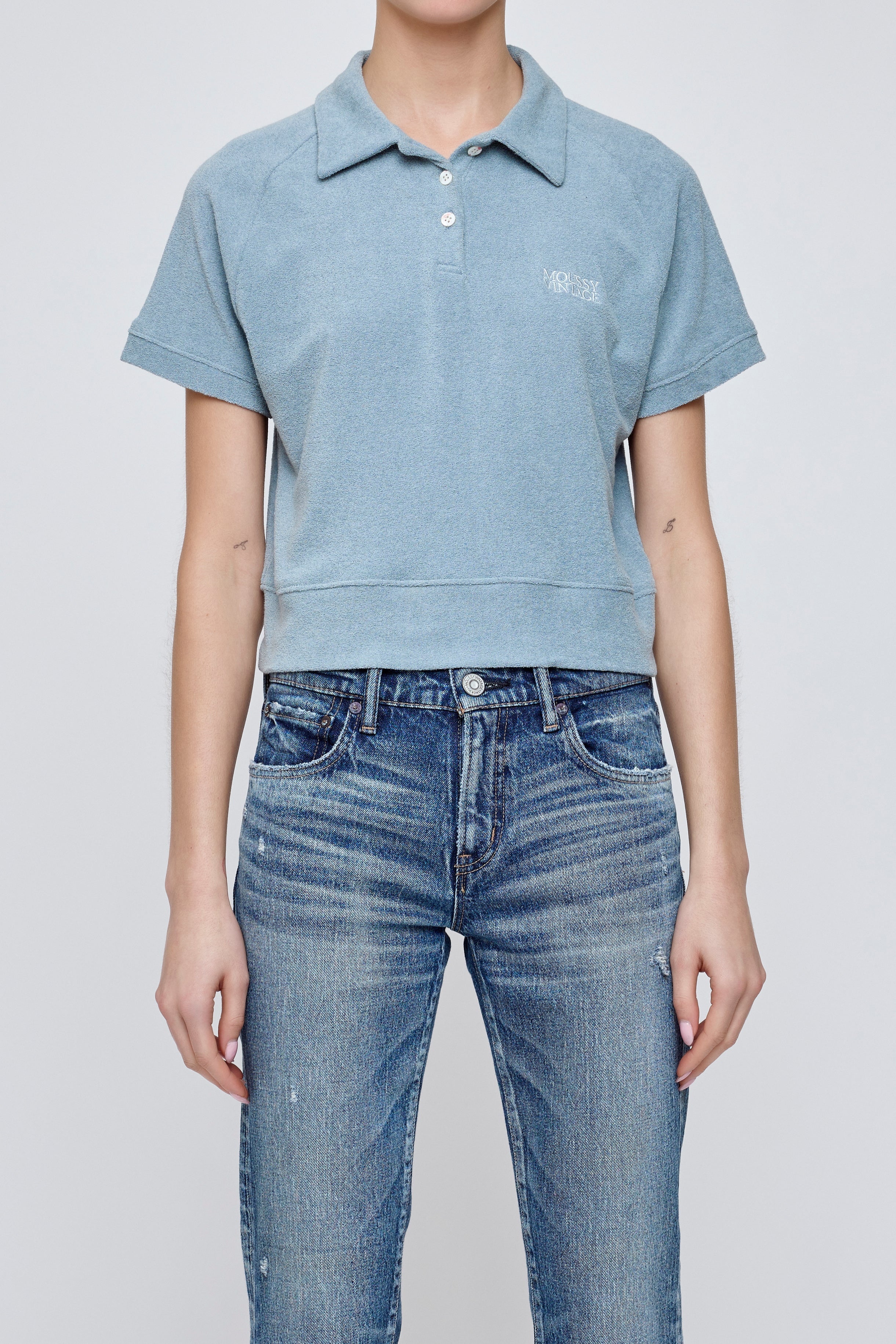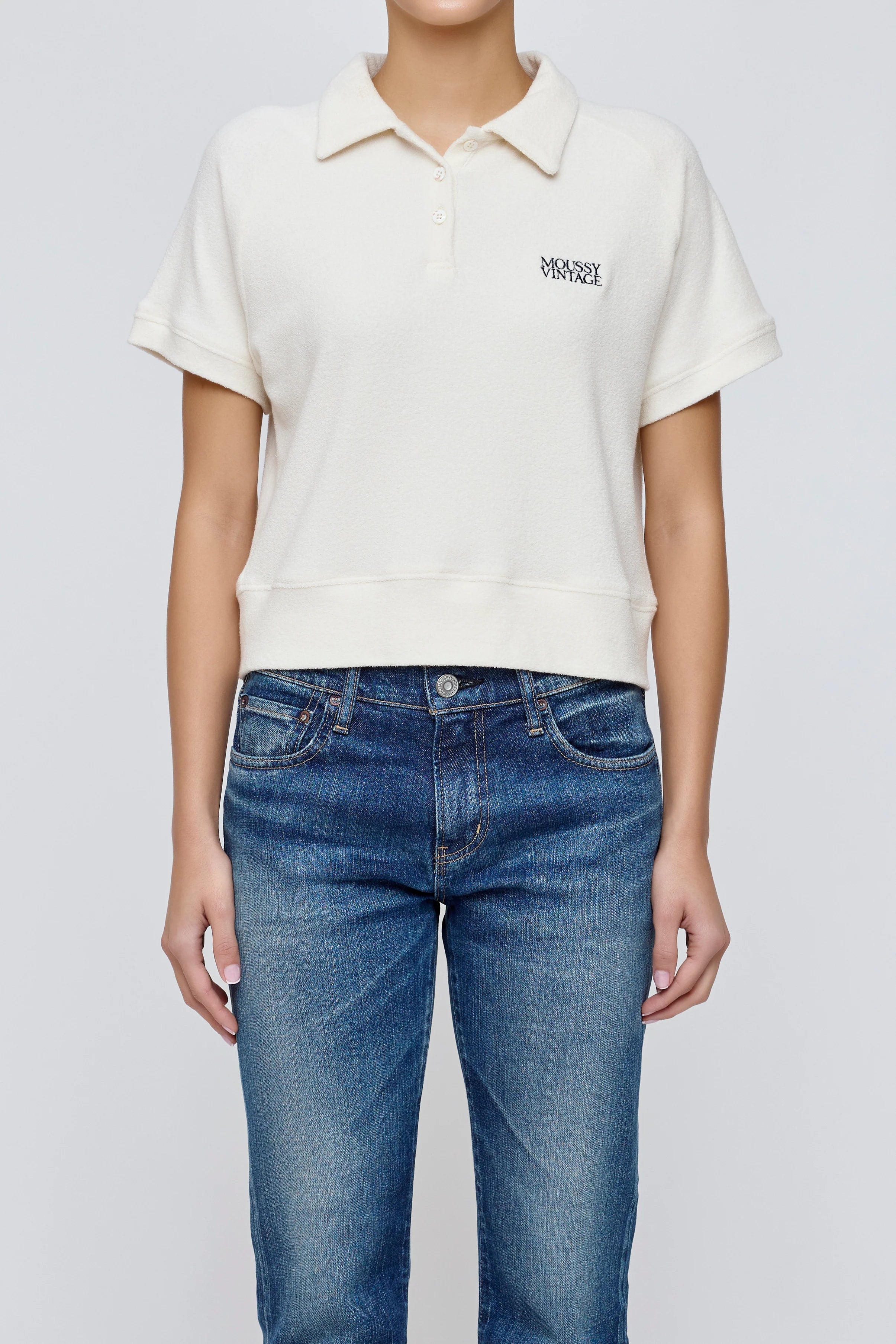 With a hint of preppy style, this fitted polo hits at the waist and features an understated MOUSSY VINTAGE logo.