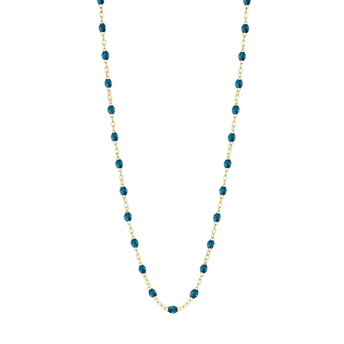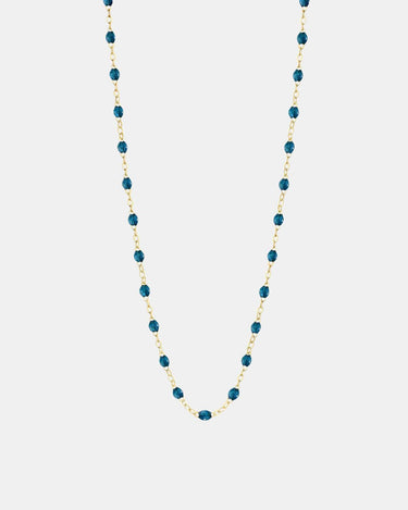 Classic Gigi Necklace in Jungle by gigi CLOZEAU. A luminous expression of elegance and bold sophistication, the Classic Gigi Necklace in Jungle is crafted in 18k gold with deep shimmery teal resin pearls that catch the light with a subtle iridescent glow. Striking yet timeless, it’s perfect worn alone or layered—celebrating individuality, personal style, and everyday refinement.