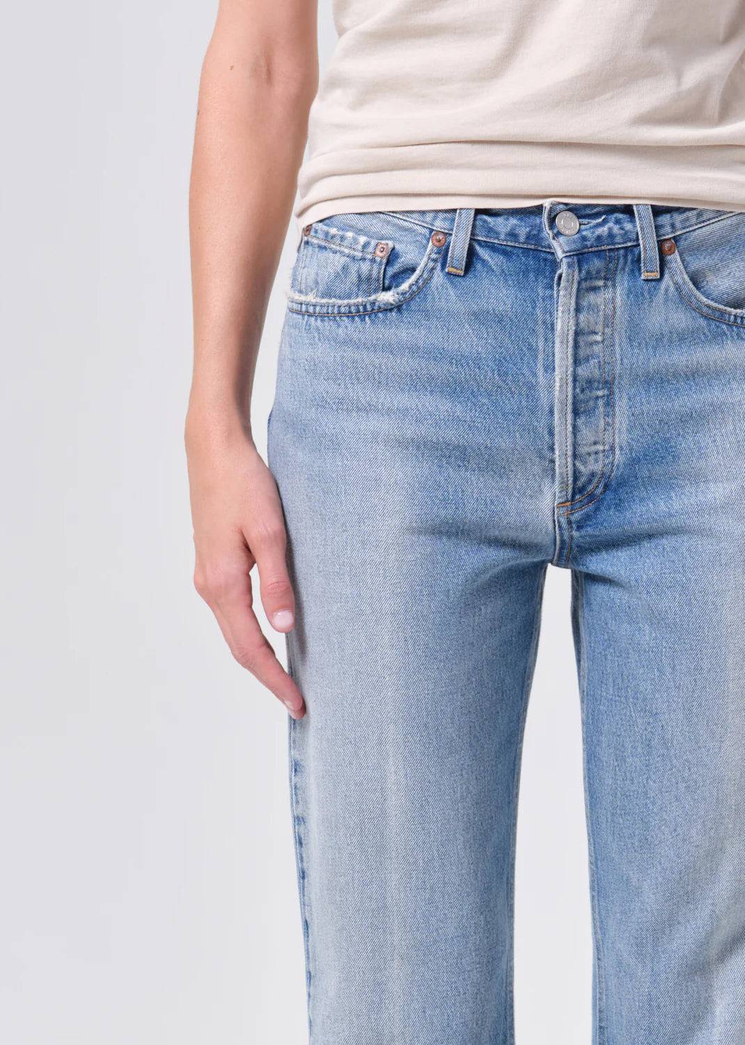 A must-have for the season, the Lana by AGOLDE is the original relaxed straight. Designed with a straight top block and an easy, vintage-inspired leg, it channels the look of the perfect straight jean you’ve been searching for. Rendered in a medium vintage indigo wash with a subtle creased finish, this pair feels effortlessly lived in yet refined. Crafted from rigid non stretch regenerative cotton denim with a soft hand feel, it offers structure, comfort, and everyday wearability.