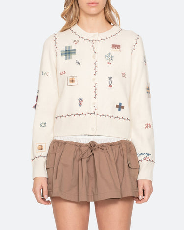 The Claira embroidered cardigan features long sleeves and delicate floral embroidery. Hand-mended stitching throughout and embroidered initials add an artisanal, bespoke touch. A beautifully crafted piece that elevates everyday dressing with effortless charm.