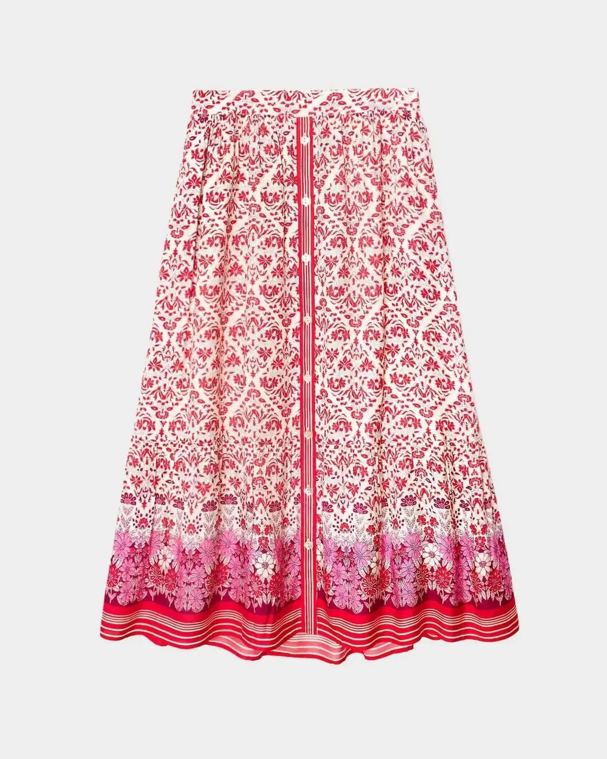 Flower Power. Taryn is back this season in a vibrant floral silk cotton print. Taryn is a tiered midi skirt lined in solid silk cotton twill and features a banded waist and button-down front.