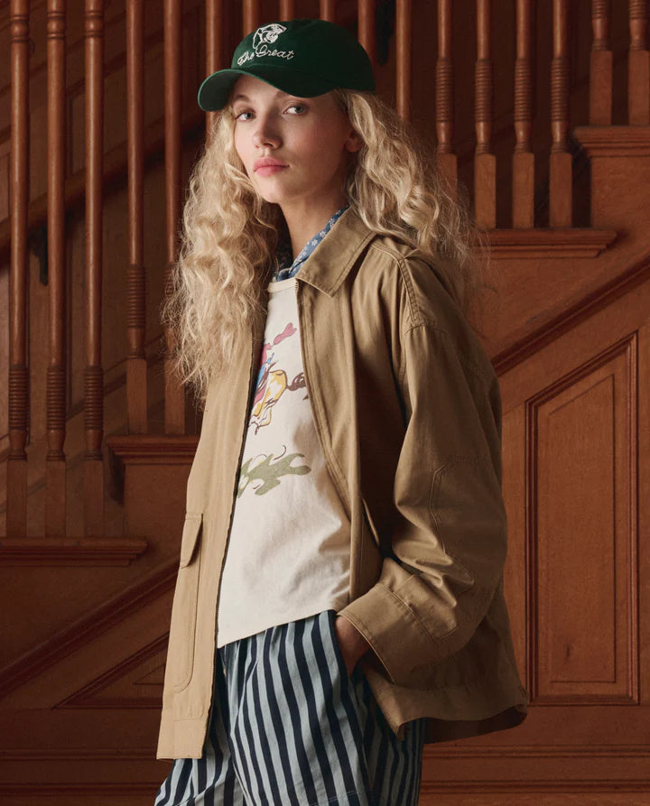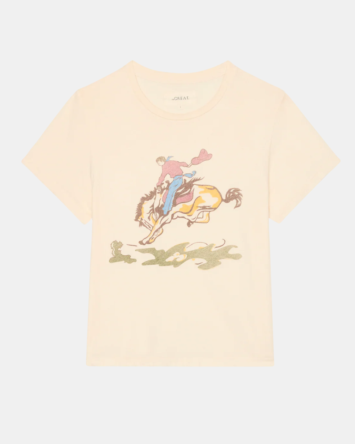 The Little Tee. is inspired by a vintage ‘30s men's undershirt with a super-washed and lived-in feel. This tee is our favorite layering piece—it's close to the body fit makes it easy, comfortable, and perfect for wearing by itself or layered under a sweater. This season, it features The Rider Graphic- inspired by a 1950s little boy's graphic tee. Handcrafted locally in Los Angeles, The Great's process ensures beauty and uniqueness—no two pieces are alike.