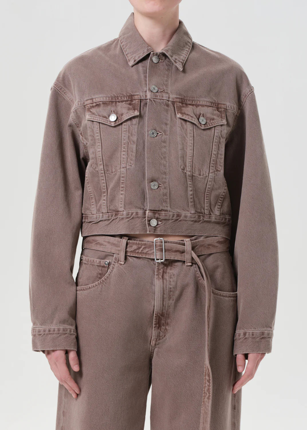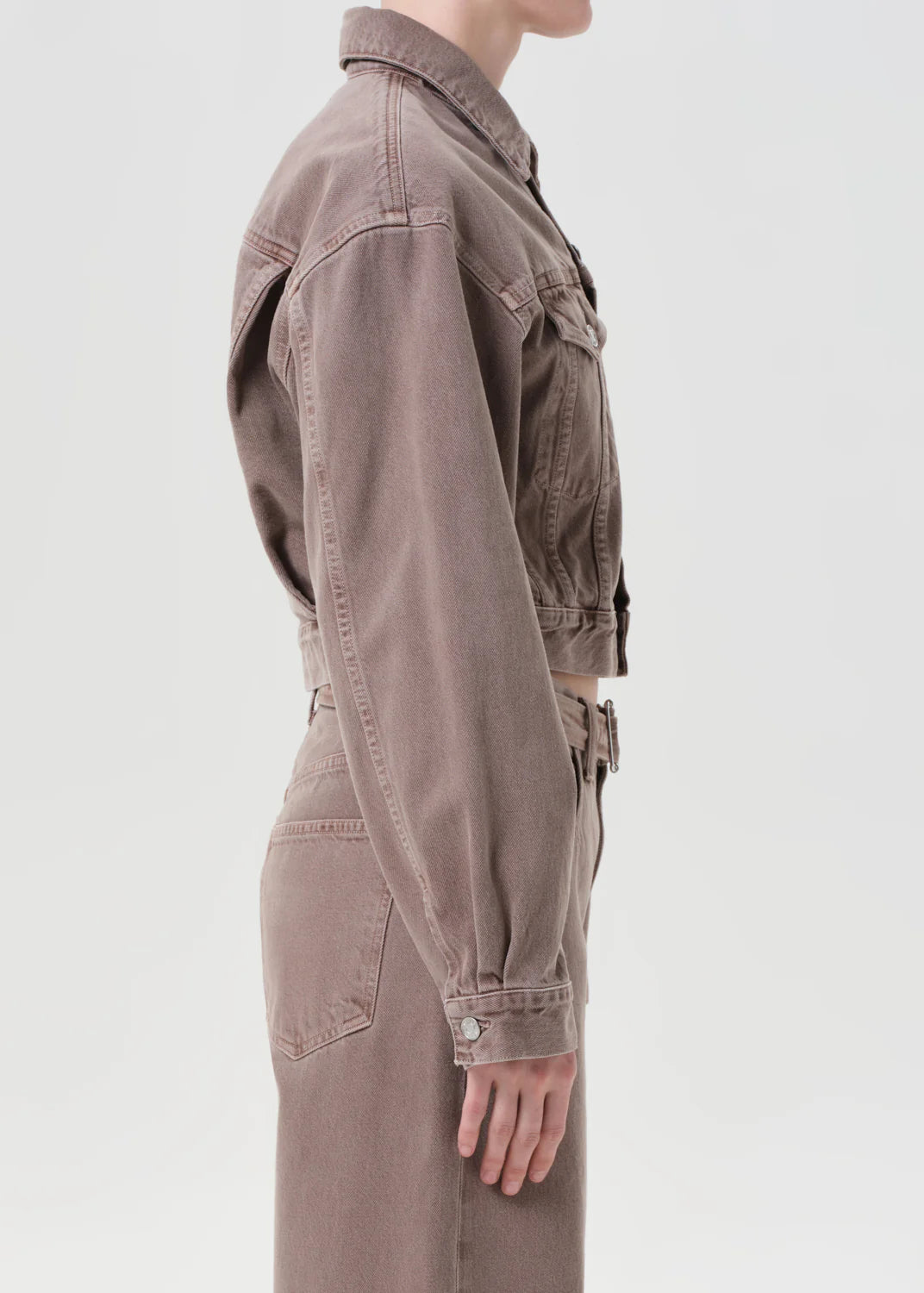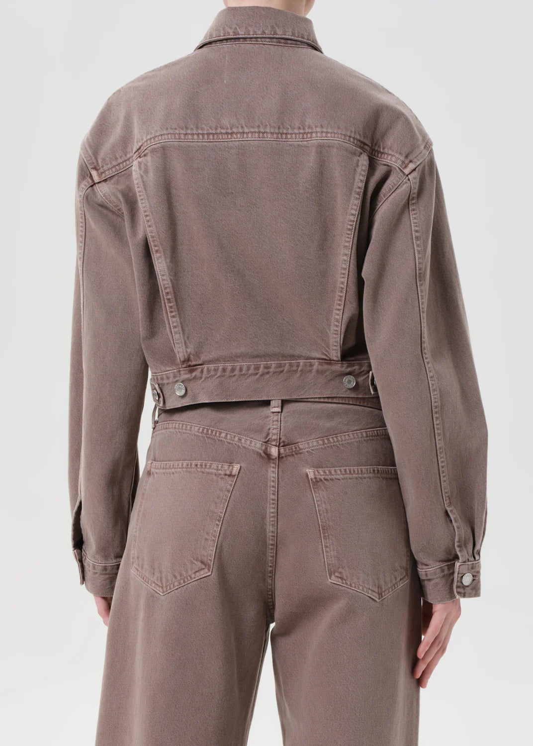 The Radley Jacket by AGOLDE is a cropped take on a classic denim trucker—structured through the shoulders with a defined waist. Crafted in a dark dusty rose-toned rigid denim, it features a boxy fit and button front closure. Pair it with tonal denim or offset with crisp white layers.