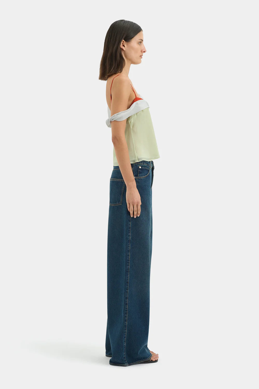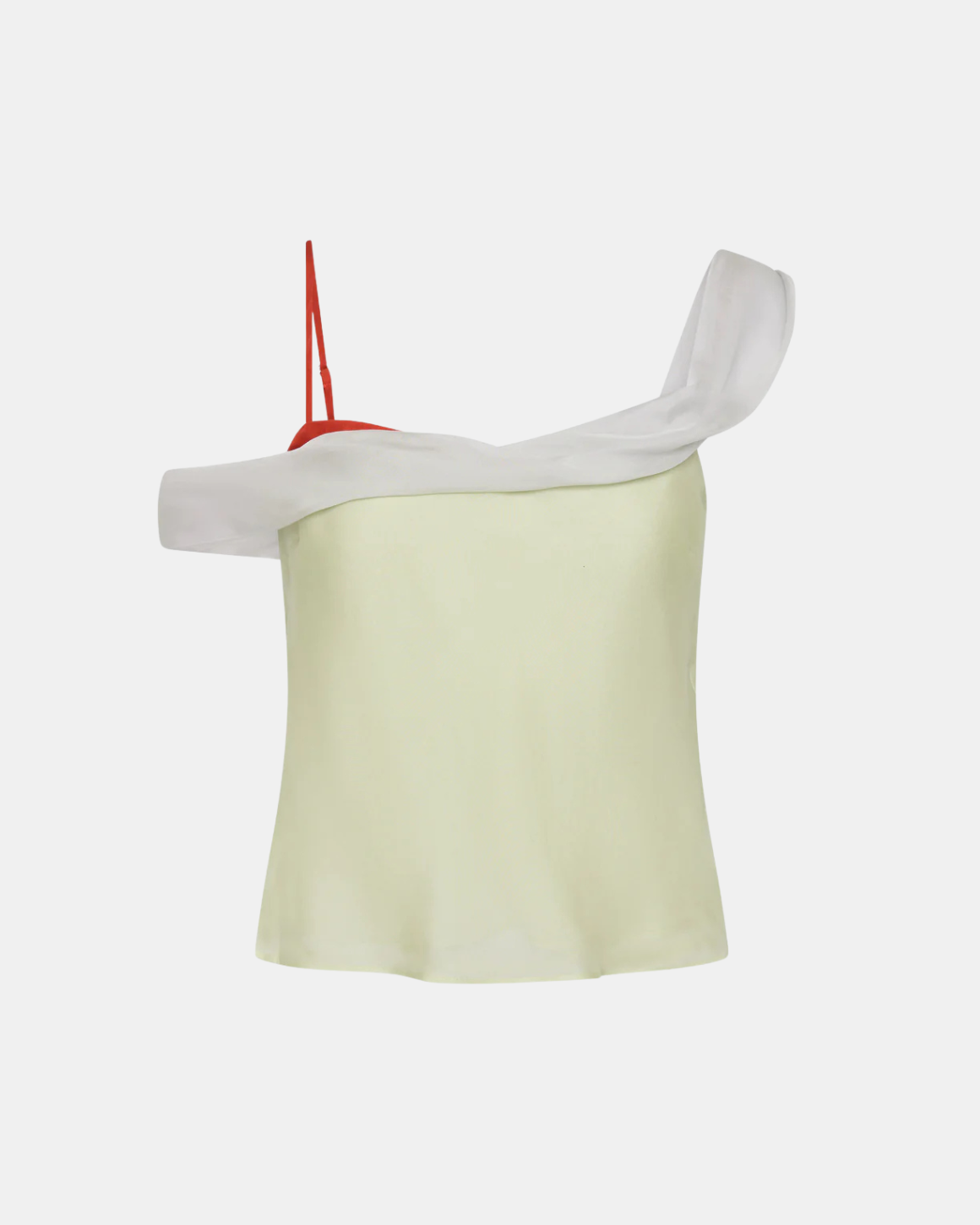The Palma Cami in Splice by SIR. is crafted from lightweight silk chiffon with a soft, fluid drape. It features a draped overlayer detail for an off-shoulder effect, and finished with contrast panelling and adjustable straps.