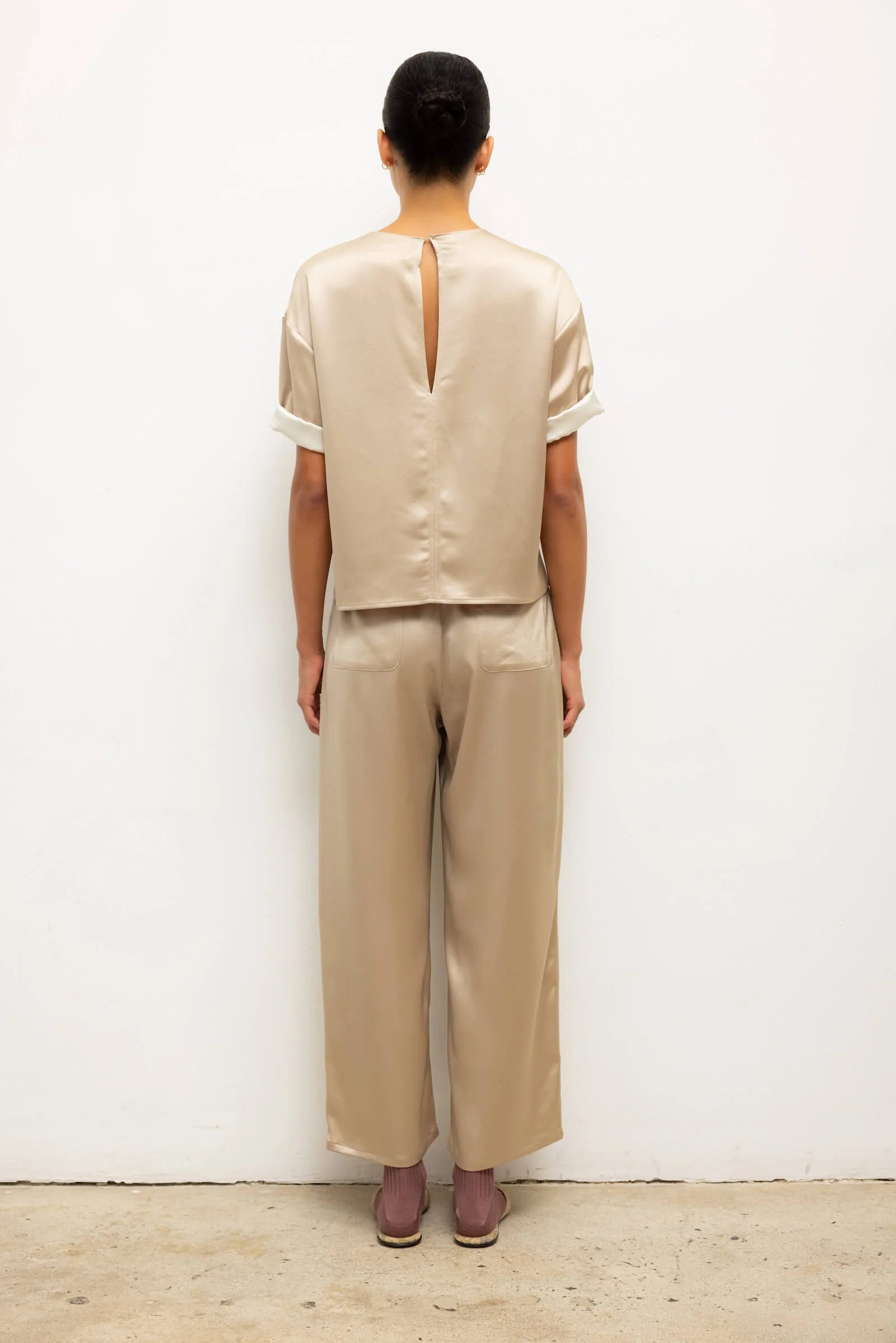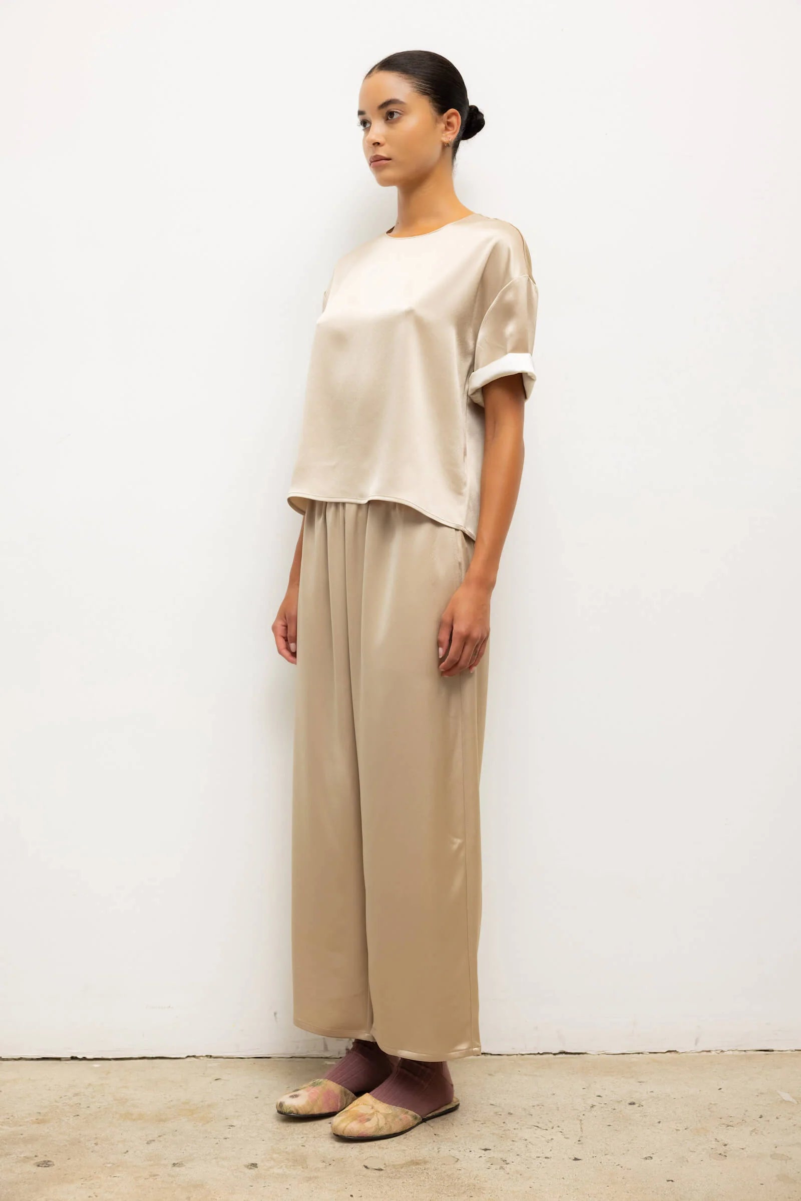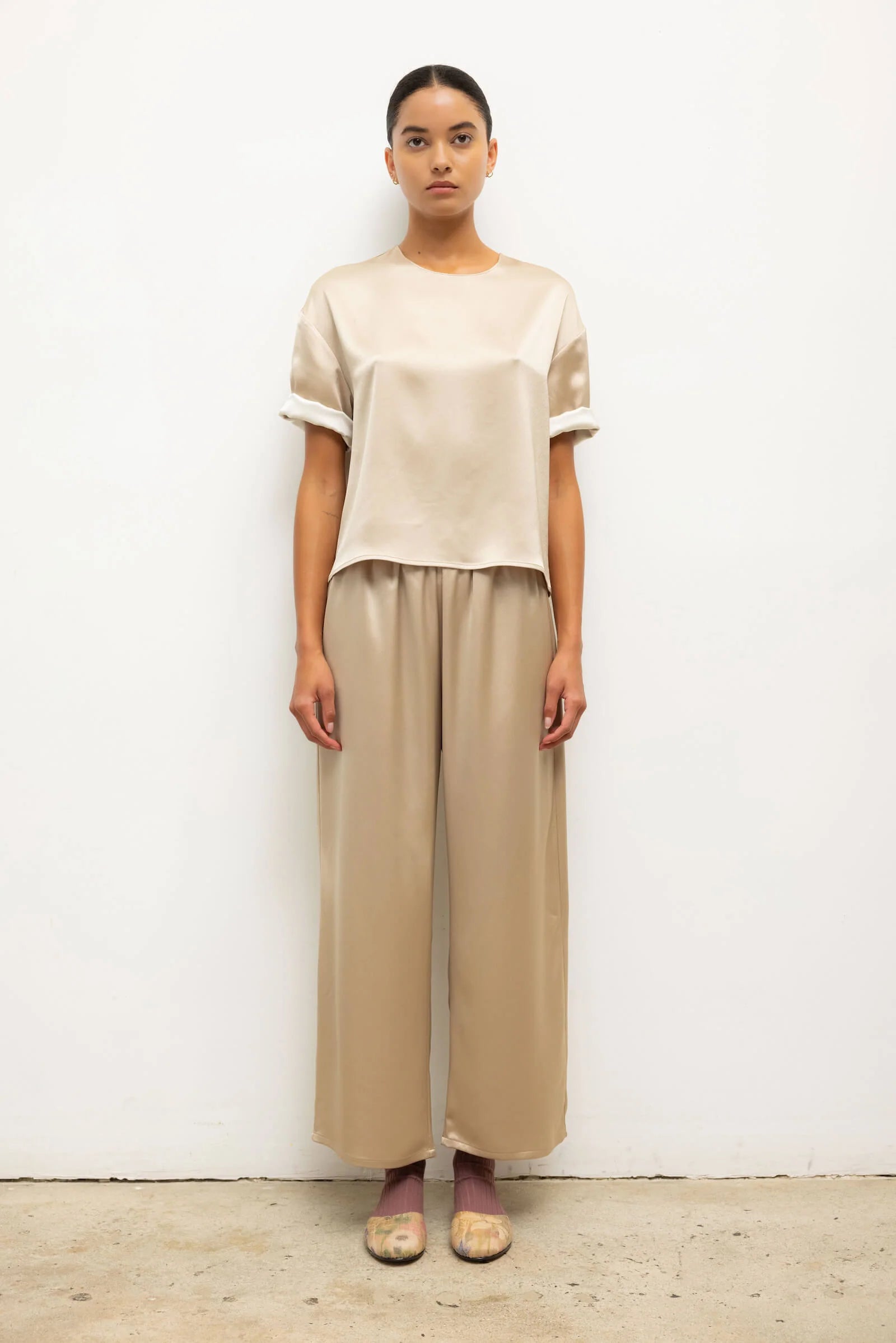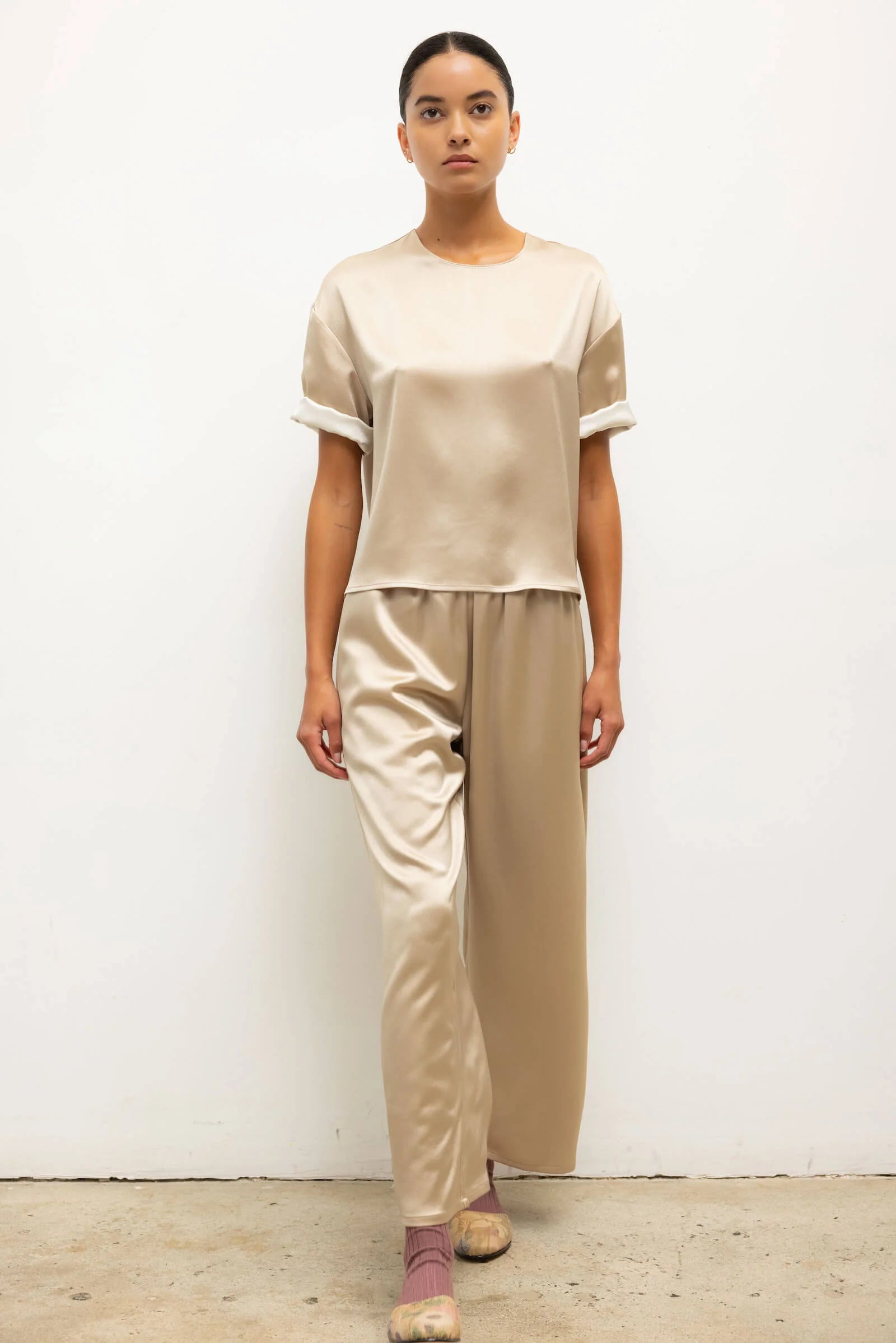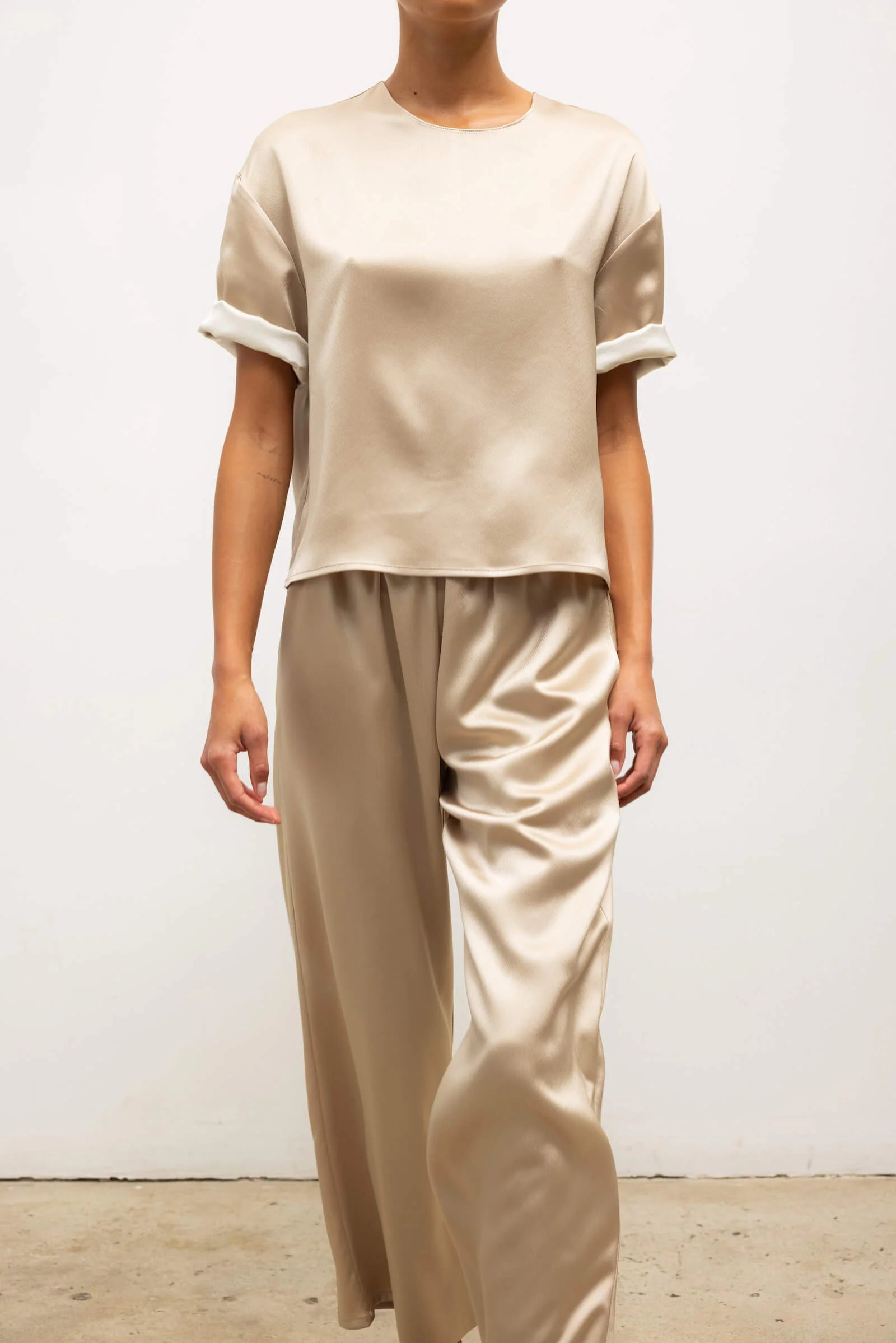Cut in a Japanese-crafted satin, the Barb Crop Drawstring Pant features an adjustable drawstring waistband, side and back pockets, and a relaxed, cropped length. The Barb is our Japanese-crafted satin that delivers a dramatic effect in beautifully draped silhouettes.