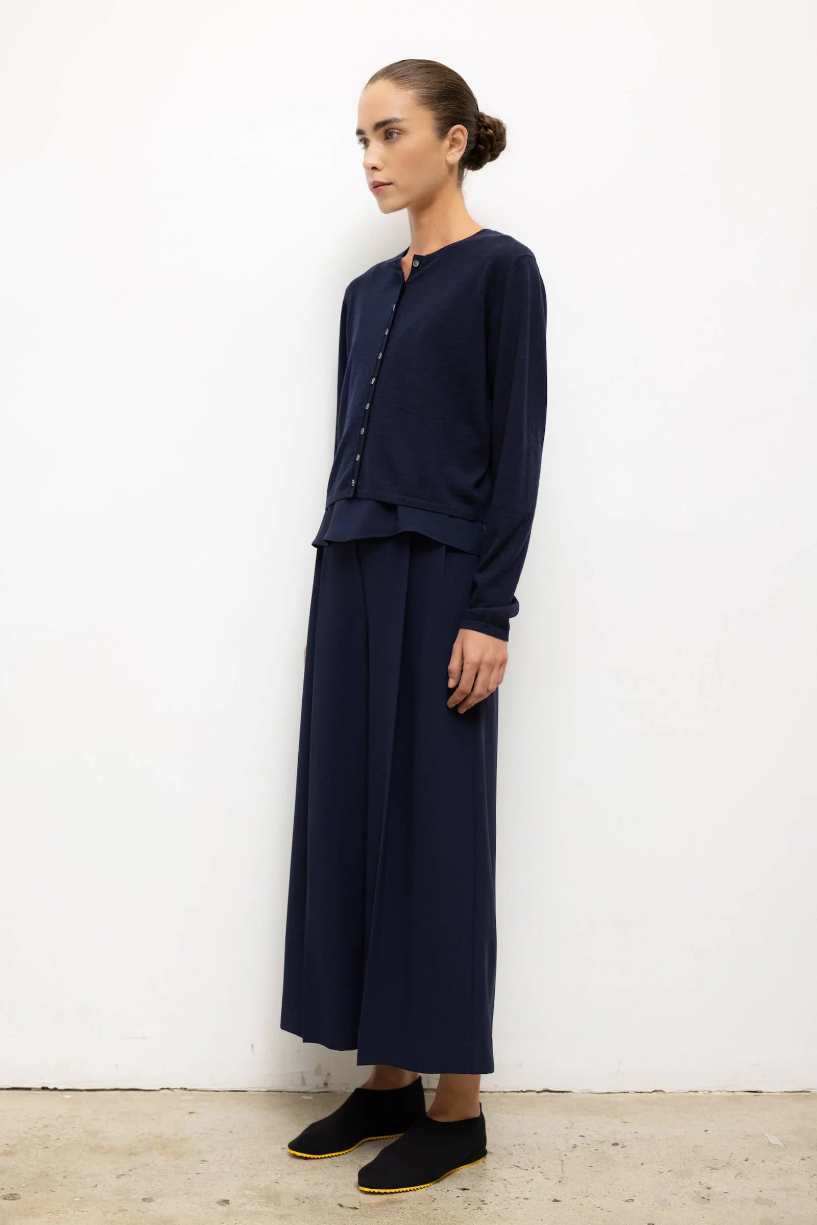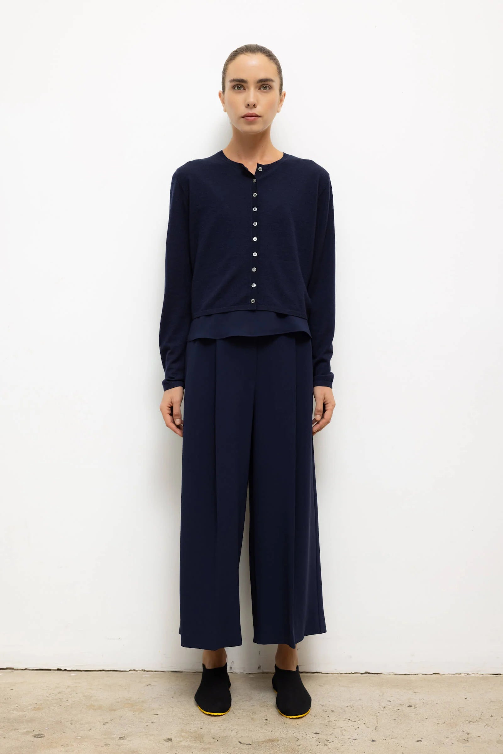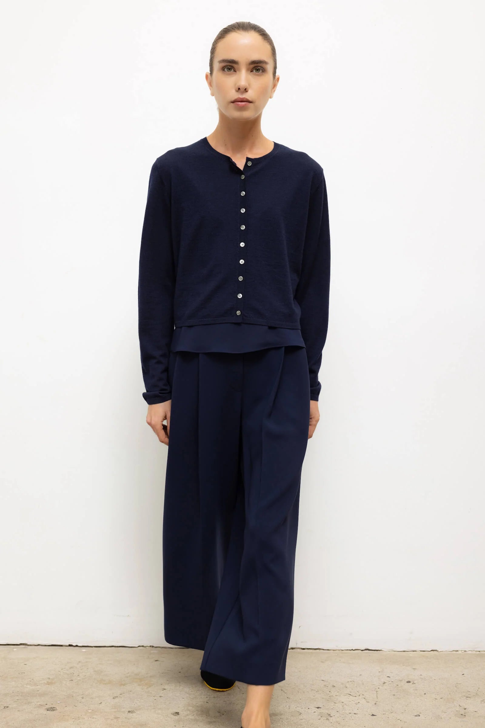 The James Crew Cardigan features a classic crew neckline, full length sleeves, and tonal button front closure. The James is a sumptuous merino wool knit crafted in Italy and envisioned in timeless sweater silhouettes.