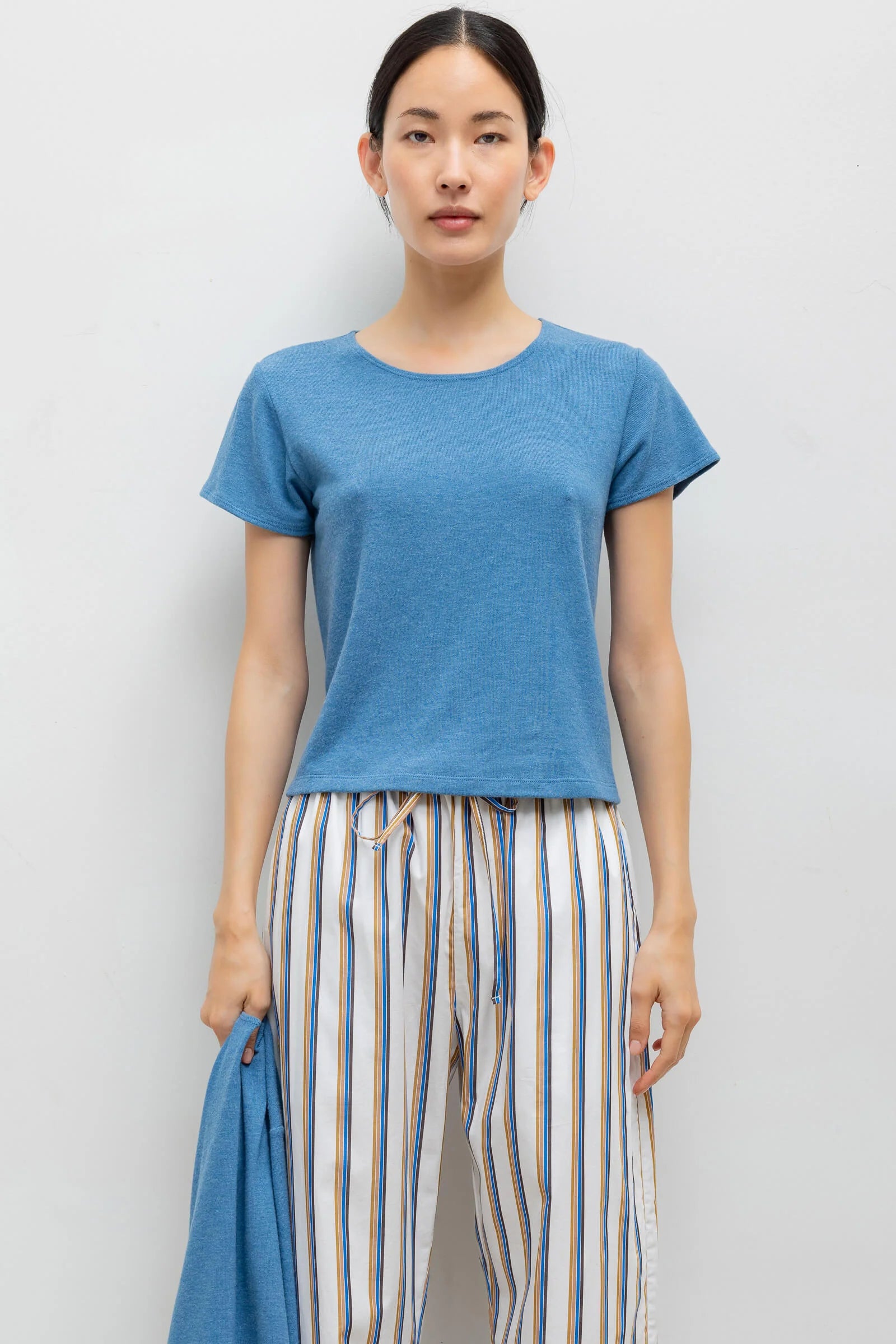 The Margo is cut in an unbelievably soft sweater jersey Lauren fabric. A timeless, crewneck short sleeve silhouette that strikes the perfect balance between a tailored and relaxed silhouette.