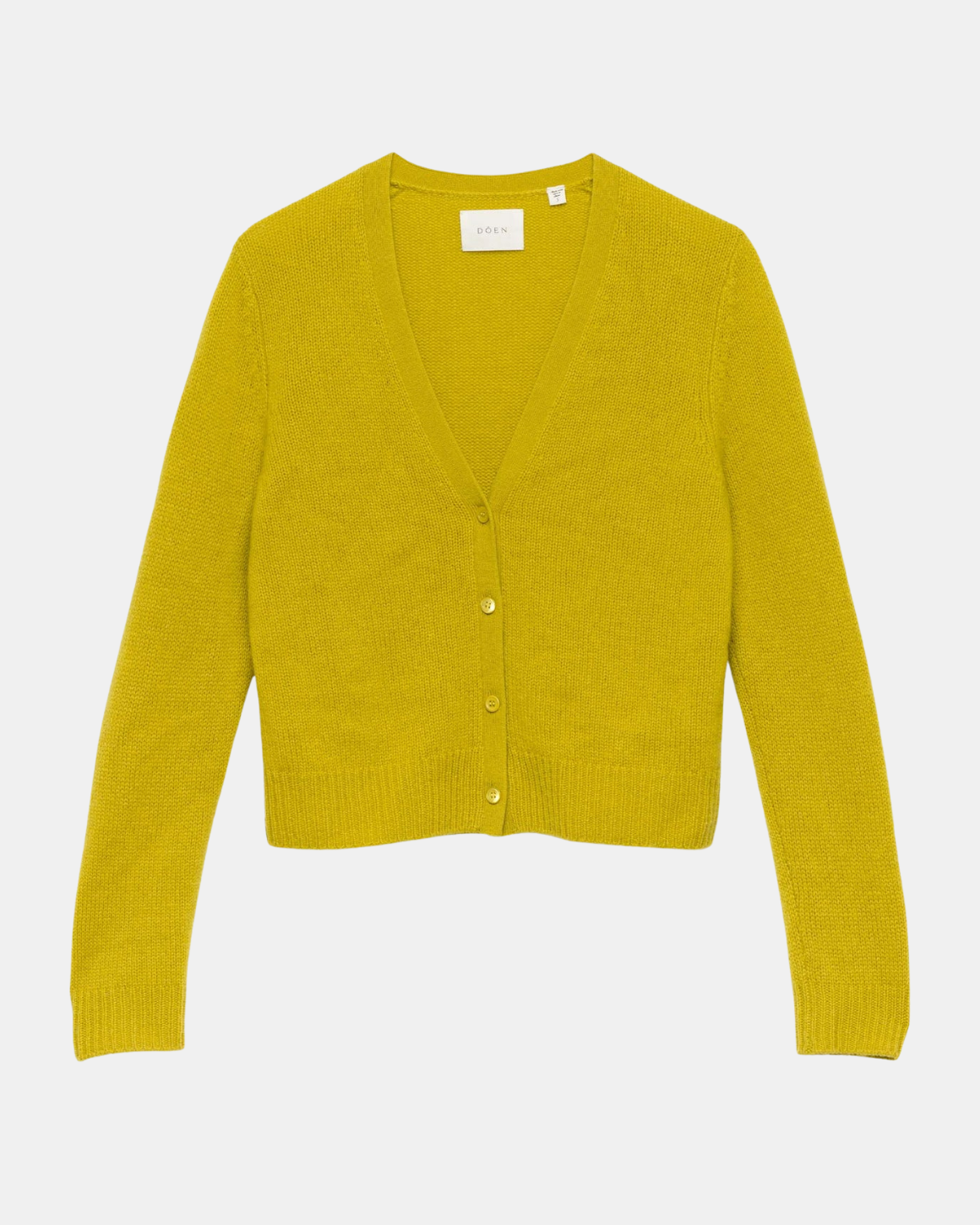 In ultra-soft, 100% cashmere, the Cameron Cardigan by DÔEN is a ‘90s-inspired knit with a V-neck, a fitted silhouette, and bracelet-length sleeves. It features mother-of-pearl buttons and ribbing at the neckline, cuffs, and hem.