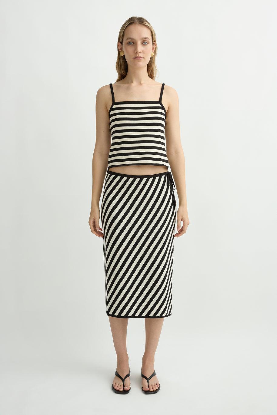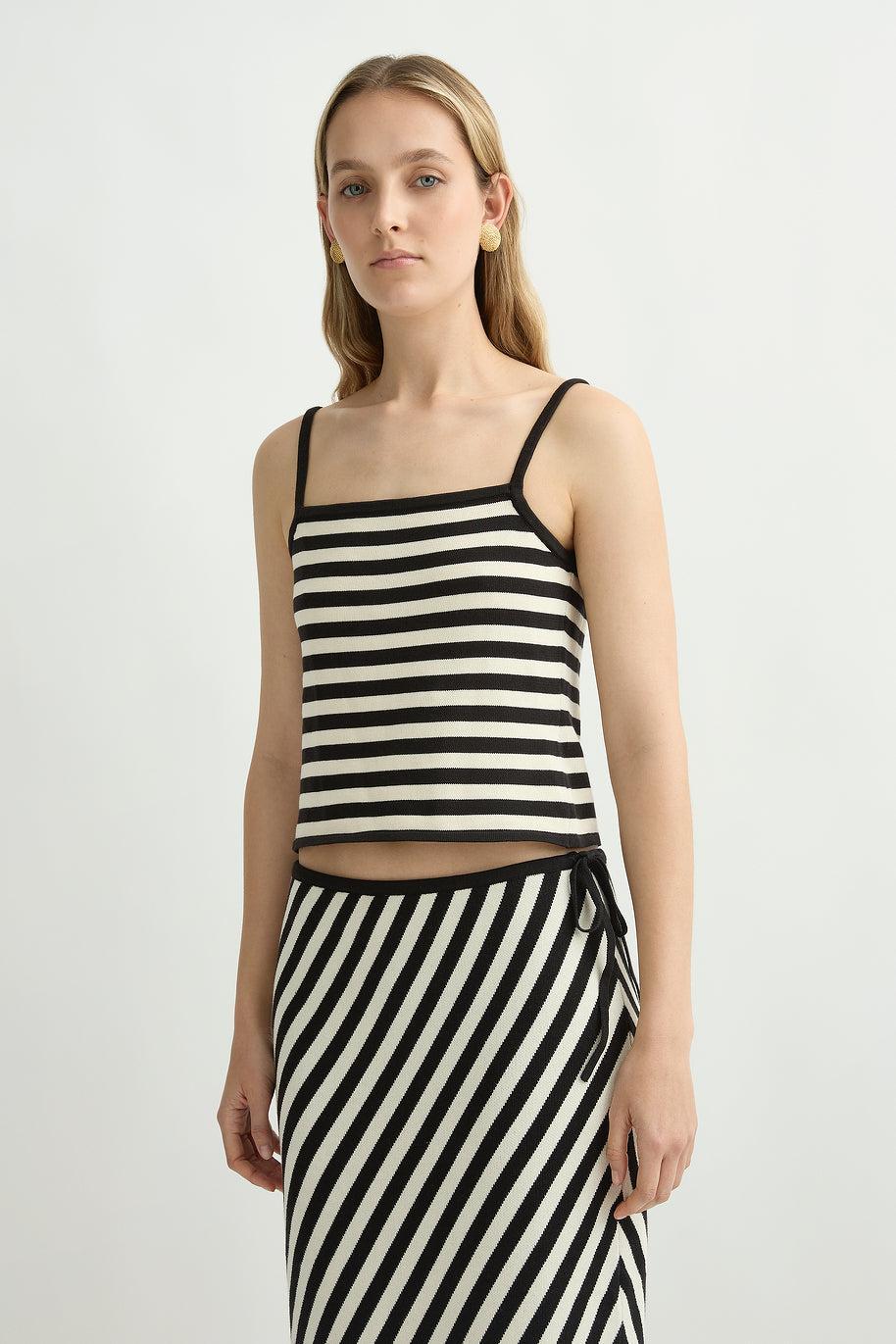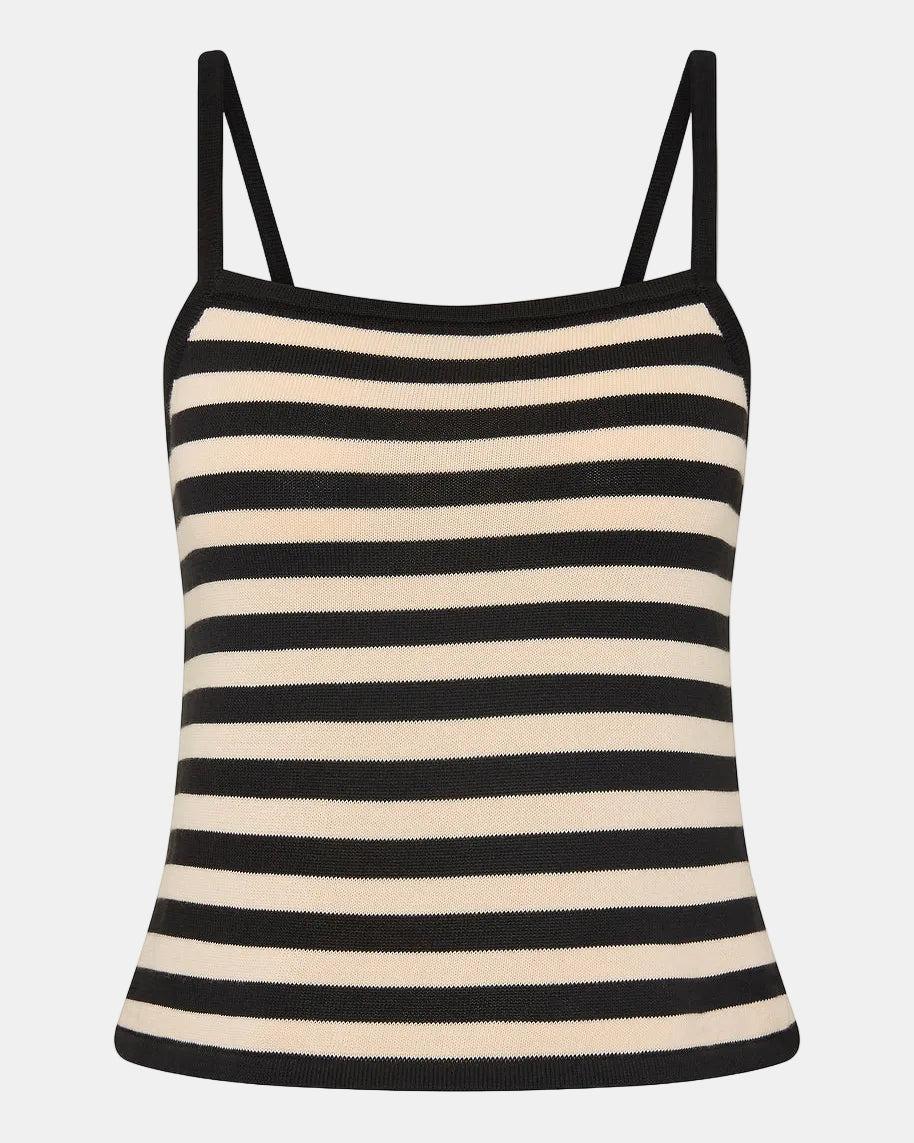 The Darcy Top is crafted from soft 100% Pima cotton in a relaxed cami silhouette. It features wide straps and contrast black binding along the neckline and armholes for a clean, understated finish. Perfect for layering or wearing alone.