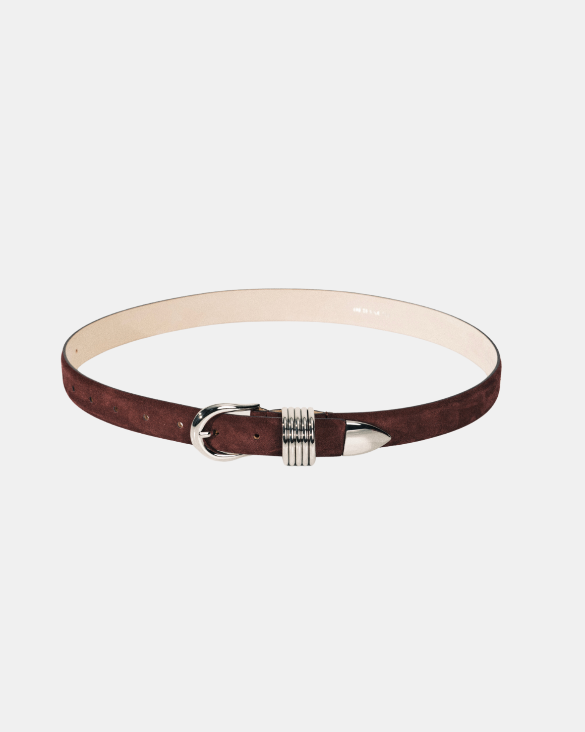 The Hollyhock Suede Belt is Déhanche’s signature style, defined by its bold five-ring design and extended strap with multiple holes for versatile sizing. Meticulously crafted in Italy from supple calfskin suede and finished with polished silver hardware, it’s a modern statement piece that elevates any look.