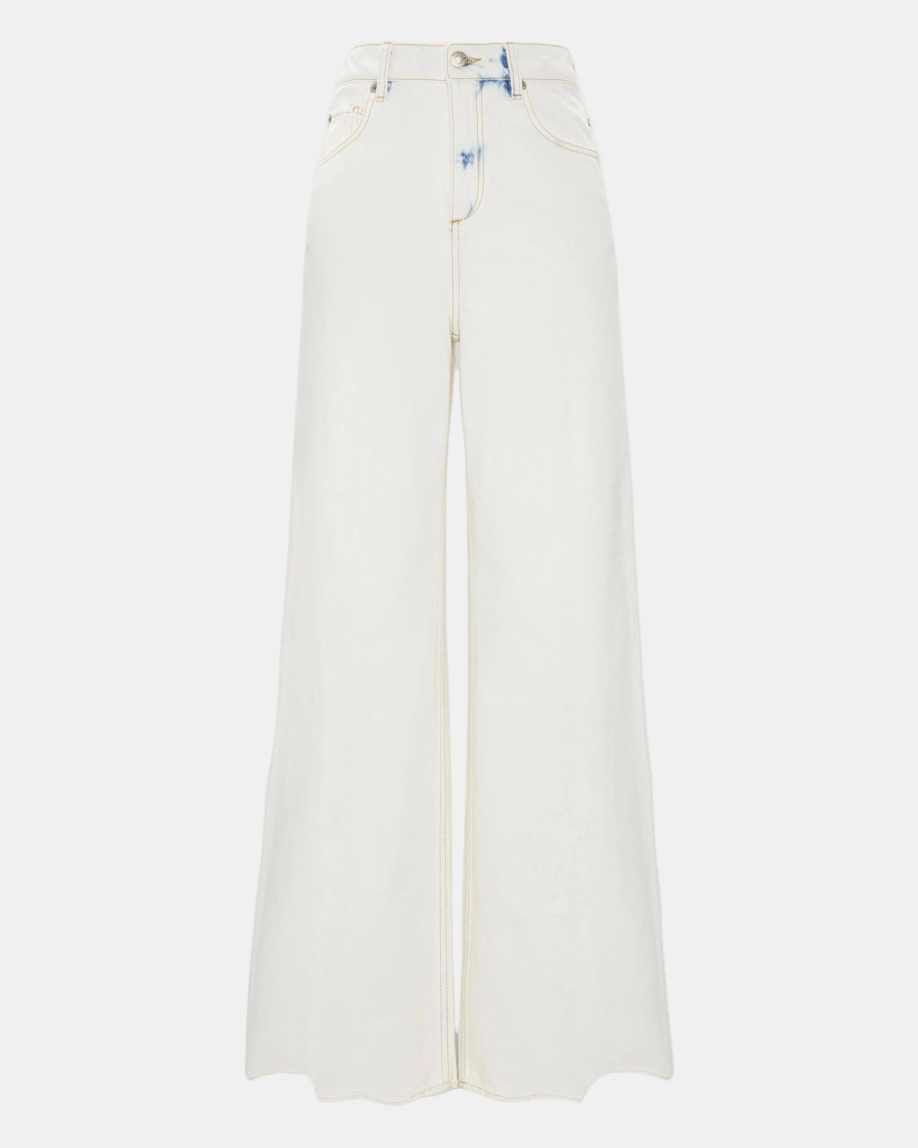The light wash jeans have an extra wide leg and are made from pure cotton denim. The mid-rise silhouette has classic 5-pocket styling and hints of blue washing.