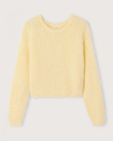 The Niby jumper makes a style statement with its thick knit and bold texture, designed to envelop the figure in softness and warmth. Knitted with double yarn, it is ultra-soft to the touch and offers optimal comfort. Its short, loose, ball-shaped cut, combined with long sleeves and a deliberately fluffy effect, makes it a key piece in any wardrobe. Wear it over a shirt or as a second skin.