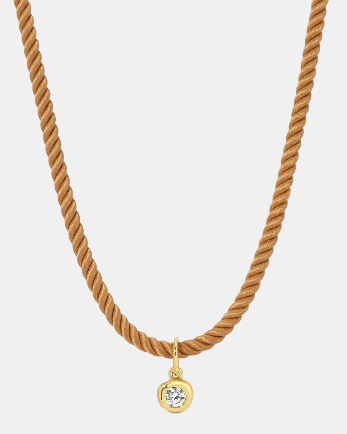 The Diamond Pillow Cord Necklace blends playful style with elevated color. The luxurious twisted silk cord features a diamond pillow pendant and is completed with a beautifully detailed closure. This chic piece shines solo or layered.