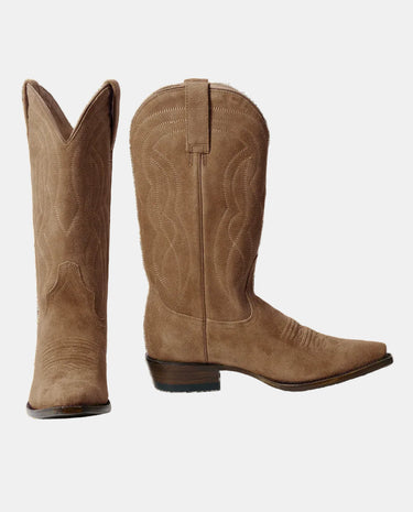 Made in collaboration with Stetson, whose legacy of authentic craftsmanship has defined the spirit of the West since 1865, this special edition boot combines time-tested craftsmanship with timeless western style. It features a supple suede vamp, a 13” suede shaft, and a statement-making snip toe. A co-branded all-leather sole, crafted with lemonwood pegs and brass nails, and a hand-stacked leather heel provide a firm foundation, while premium cowhide leather lining and a cushioned leather insole ensure all-day comfort and support.