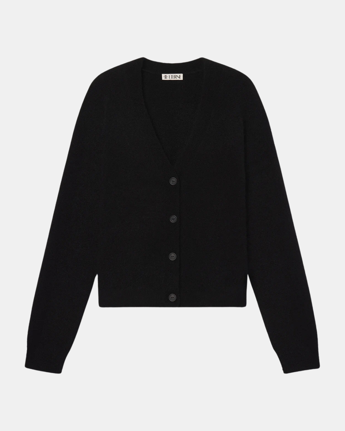 ÉTERNE's Walt Cardigan is crafted from ultra-soft cozy teddy cashmere, offering a relaxed, boxy fit and plush, teddy-inspired texture—an elevated essential for everyday wear.